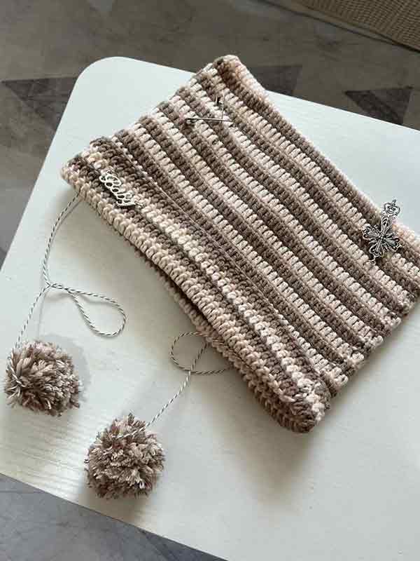 Beanie-Mütze mit Streifen-Katzen-Design und Vintage-Anhänger