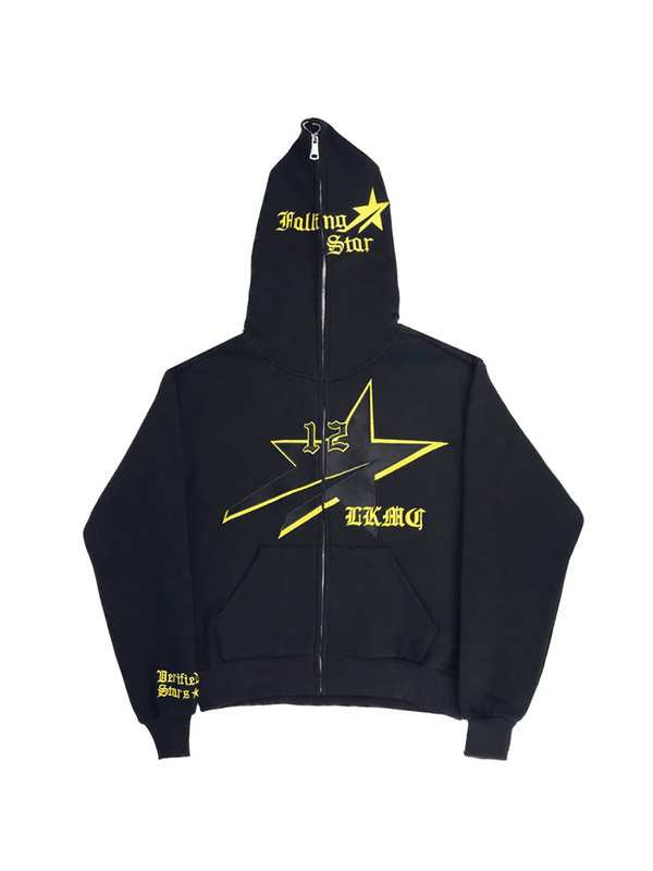 Übergroßer Kapuzenpullover für Herren mit lustigem Aufdruck und Reißverschluss