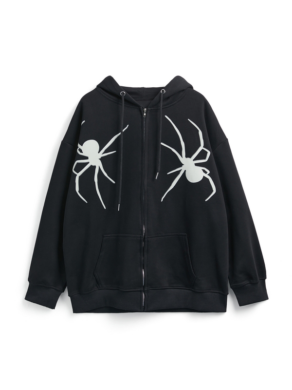 Übergroßer Kapuzenpullover mit durchgehendem Reißverschluss für Herren mit Spinnenmuster