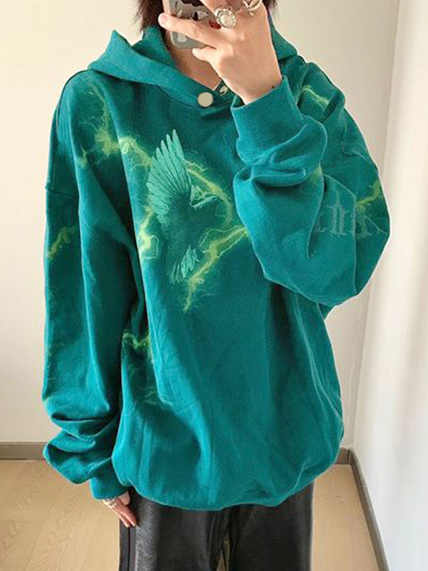 Übergroßer Kapuzenpullover mit Vintage-Schmetterlingsdruck und Reißverschluss