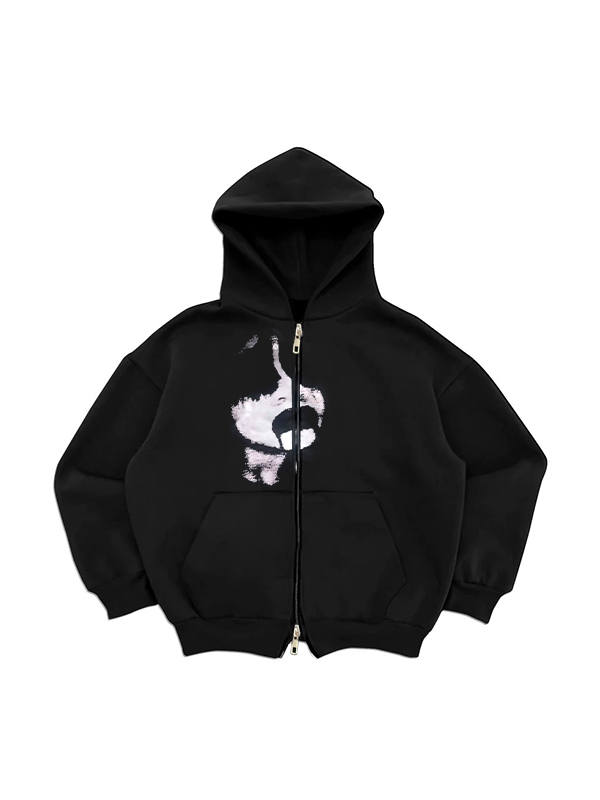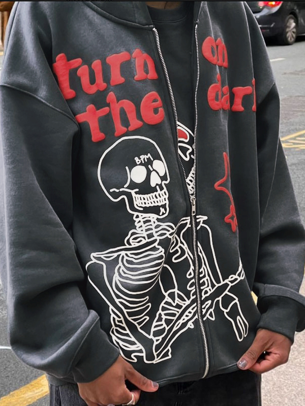 Übergroßer Kapuzenpullover für Herren mit lustigem Aufdruck und Reißverschluss