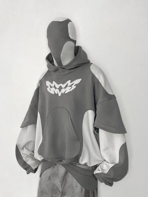 Übergroßer Kapuzenpullover mit Street-Abstract-Print und doppeltem Reißverschluss für Herren