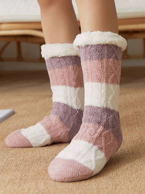 Farbblock gestreifte, mit Fleece gefütterte Socken