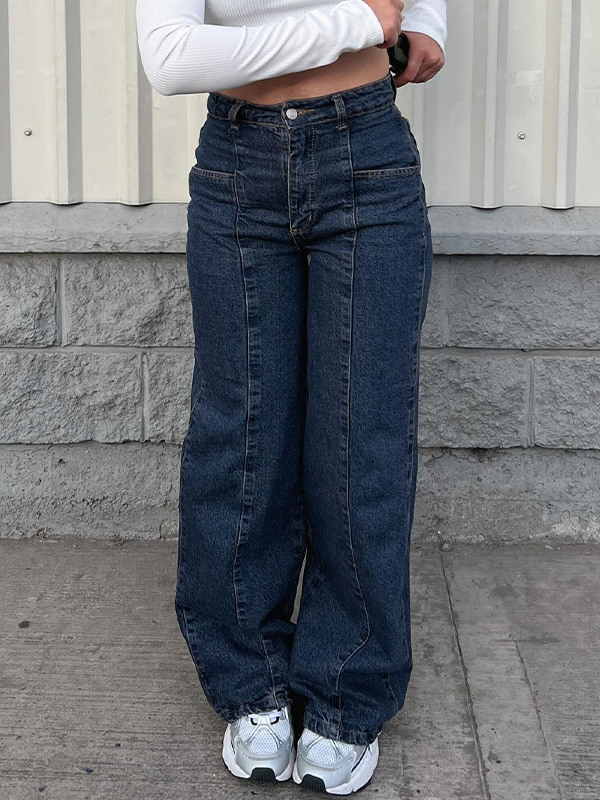 Gerade geschnittene Boyfriendjeans im Vintage-Stil mit weitem Bein