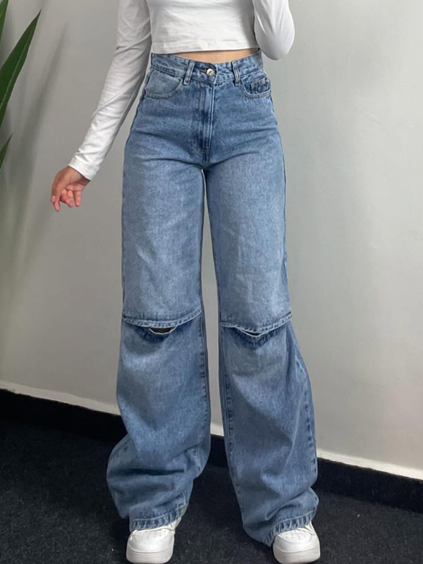 Amerikanische trendige lockere Jeans mit halbelastischer Taille