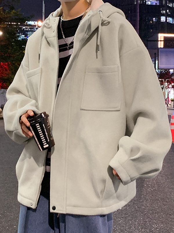 Feste, kurze Wolljacke mit Kapuze und Reißverschluss für Herren