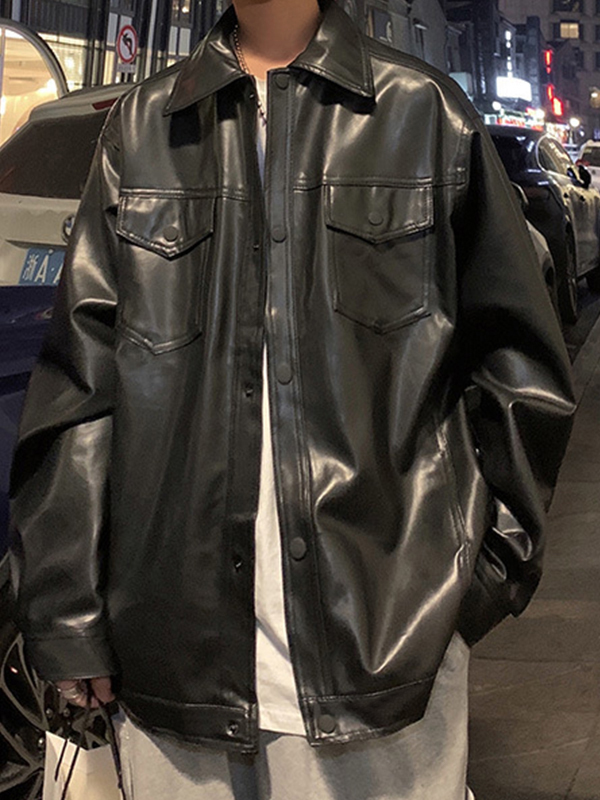 Herren-Motorradjacke aus Leder im Vintage-Stil mit Pattentasche und Reverskragen