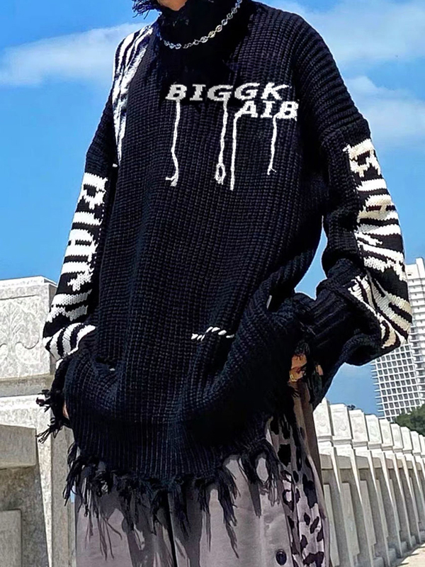Hochgeschlossener Herrenpullover mit Buchstaben-Jacquard-Quastendesign
