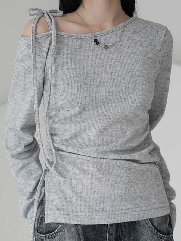 Lässiger schulterfreier Strick mit langen Ärmeln