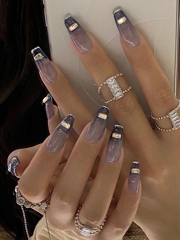 24 farbige Strass-Press-On-Nägel