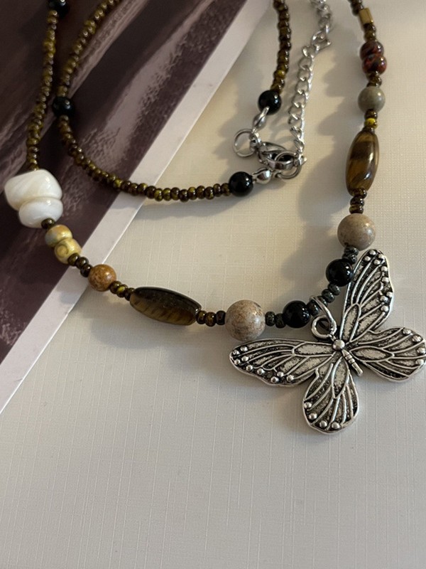 Vintage Perlen Stein Schmetterling Halskette