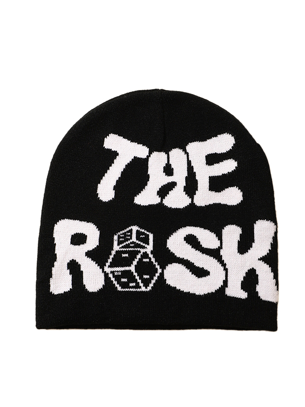 Kontrastfarbene Beanie-Mütze mit Buchstaben-Würfel-Print