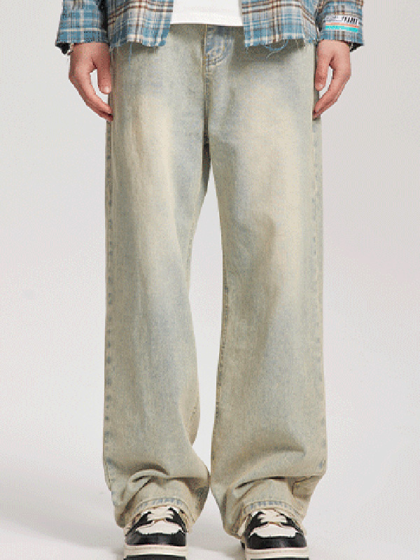Trendy verwaschene gerade weite Jeans