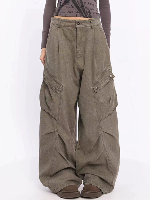 Retro Heavy Industry gewaschene, lockere Jeans mit Bambusstreifen