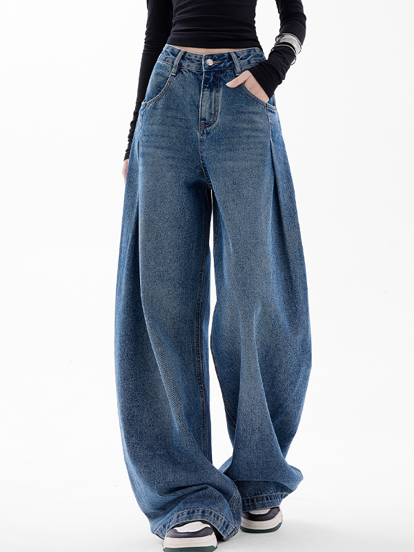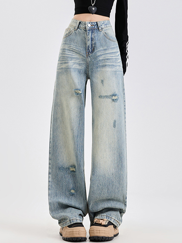 Amerikanische trendige lockere Jeans mit halbelastischer Taille