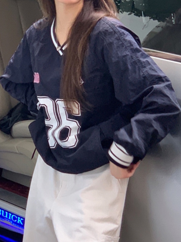 Einzigartiges Design: Dieses Sweatshirt zeichnet sich durch seinen Vintage-Nummerndruck und das Streifenbesatzdesign aus und verleiht Ihrem Look einen Hauch von Preppy-Stil.