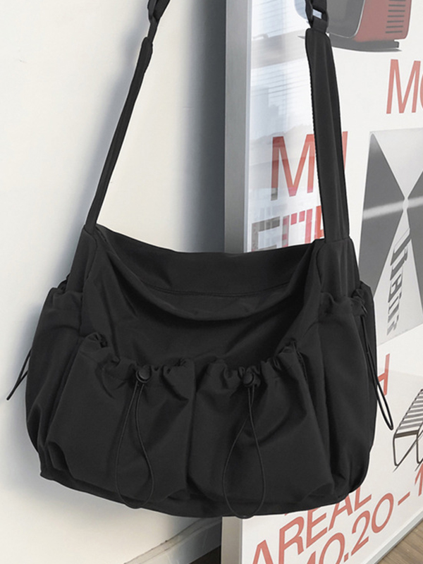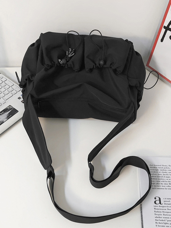 Details: Diese Umhängetasche Mit verstellbaren Schultergurten, Hosenschlitz mit mehreren Reißverschlüssen und funktionellen Taschen.