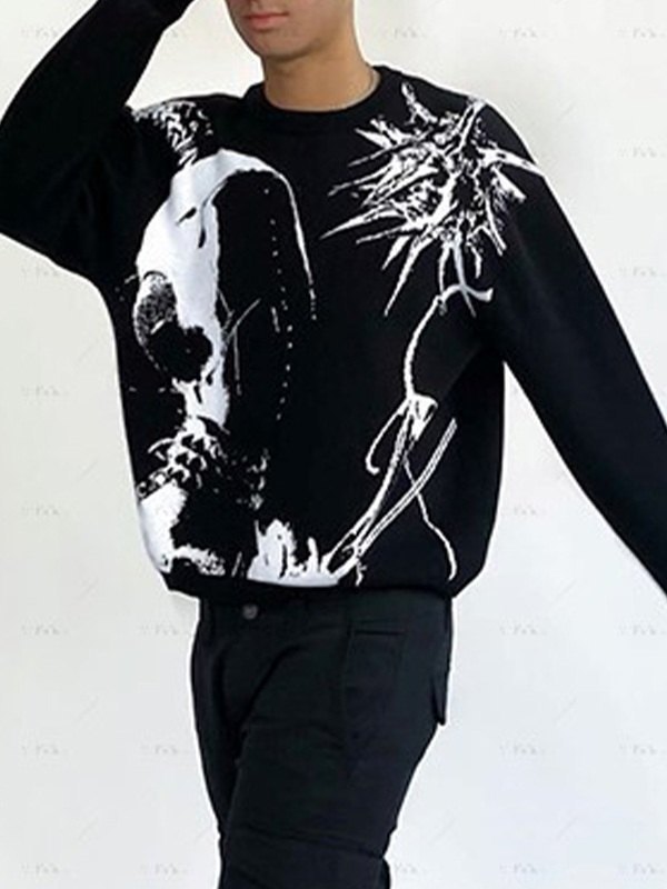 Beschreibung: Diese schicken Pullover mit Punk-Vibe für Herren haben eine entspannte Silhouette, ein Jacquard-Design mit Anime-Mustern und fallende lange Ärmel.