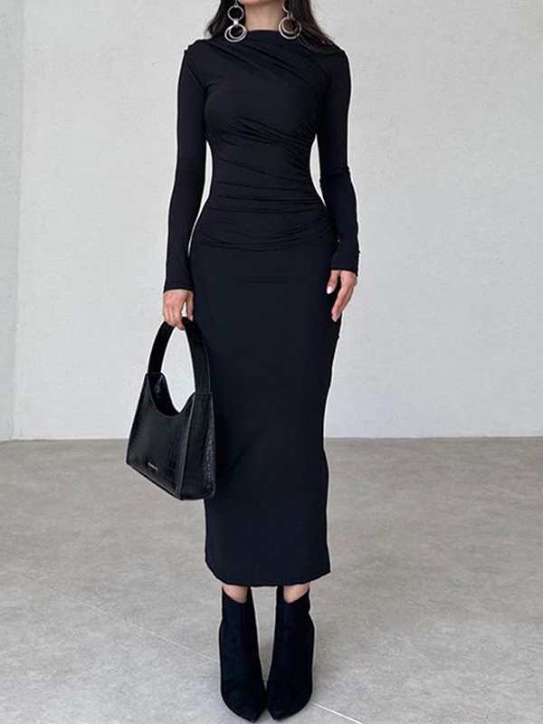 Schmal geschnittenes, einfarbiges, temperamentvolles, langes, hüftumwickeltes Kleid