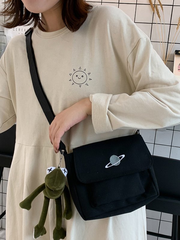Design: mit Cartoon-Anhänger, verstellbare Schultergurte, mit aufgesticktem Planeten und Reißverschluss.