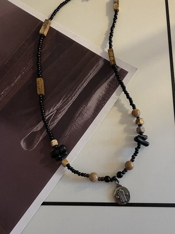 Halskette mit geflochtenem Seil und ausgehöhltem Jade-Anhänger
