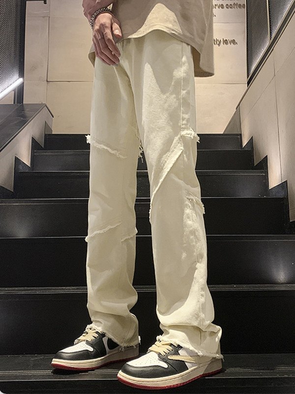 Ausgefranste Herrenjeans mit geradem Bein