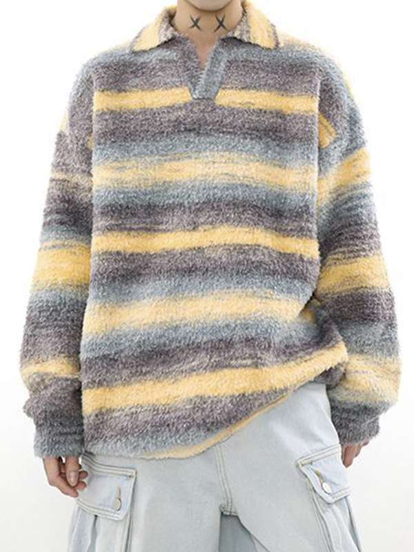 Gestreifter Vintage-Pullover mit Reverskragen für Herren