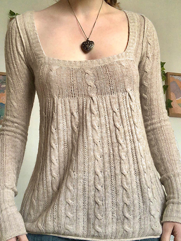 Strickwaren mit tiefem Ausschnitt und langen Ärmeln