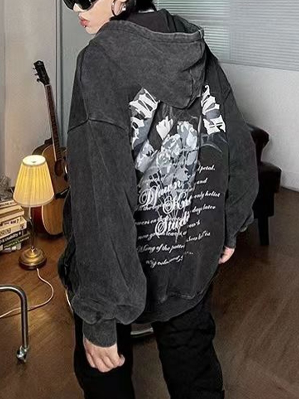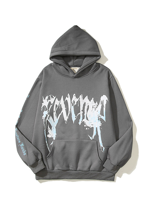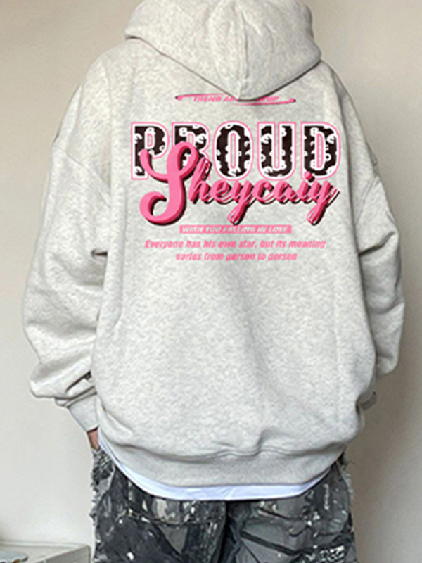 Übergroßer Kapuzenpullover mit lockerem Aufdruck und langen Ärmeln für Herren