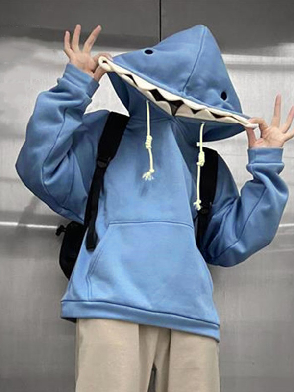 Übergroßer Kapuzenpullover mit lustigem Hai-Design für Herren