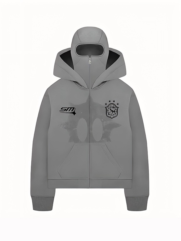 Übergroßer Langarm-Kapuzenpullover mit Totenkopf-Print für Herren