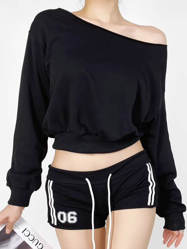 Off-The-Shoulder-Langarm-Sweatshirts mit Bateau-Ausschnitt