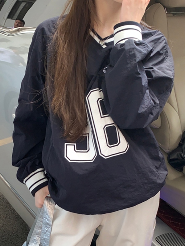 Dünnes Sweatshirt mit V-Ausschnitt und Zahlen-Print