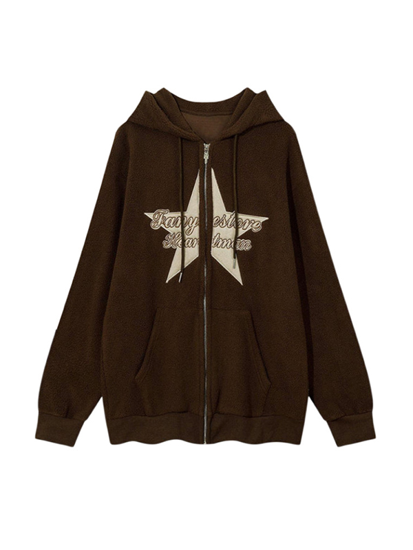 Übergroßer Kapuzenpullover mit Stern-Buchstaben-Print, Reißverschluss und Kordelzug am Saum