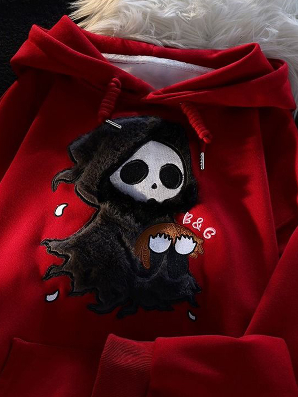 Flauschiger, übergroßer Kapuzenpullover mit Cartoon-Geist-Stickerei