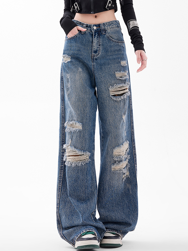 Lose Jeans für Herren im Vintage-Stil mit zerrissenem Tattered-Design