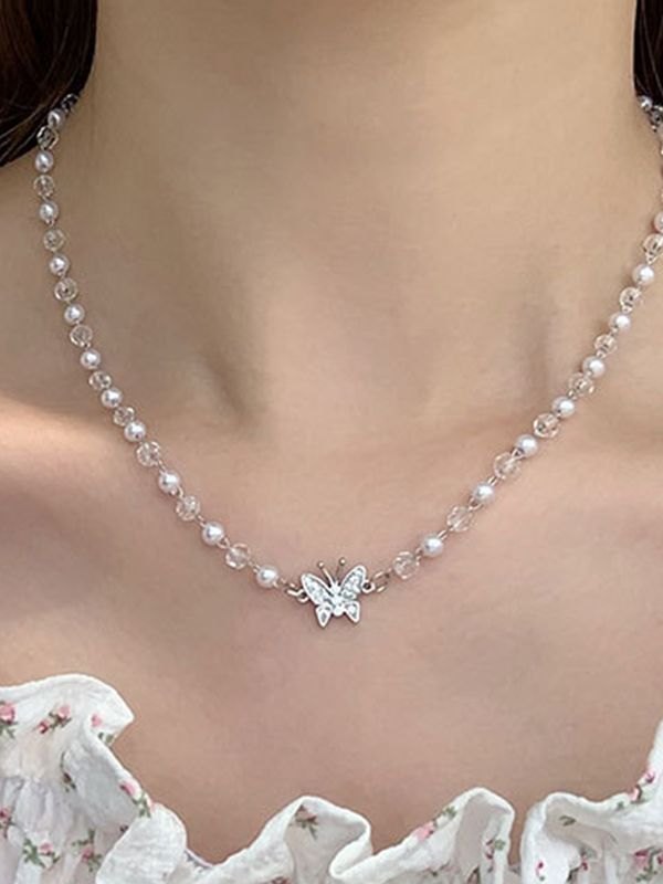 Halskette mit Schmetterlingsanhänger und Ausschnitt