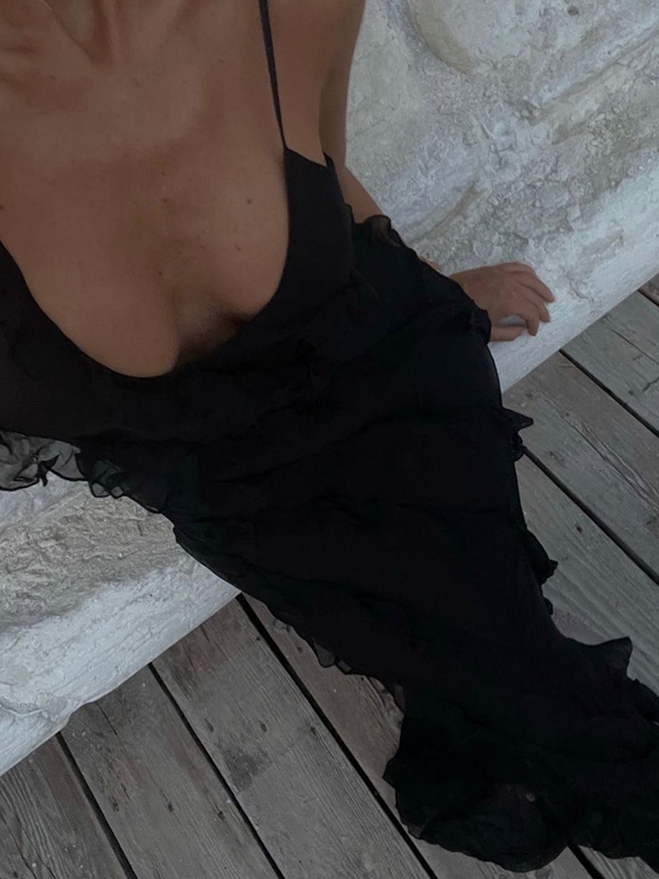 Neckholder-Maxikleid mit rückenfreiem Schlitz und Rüschen