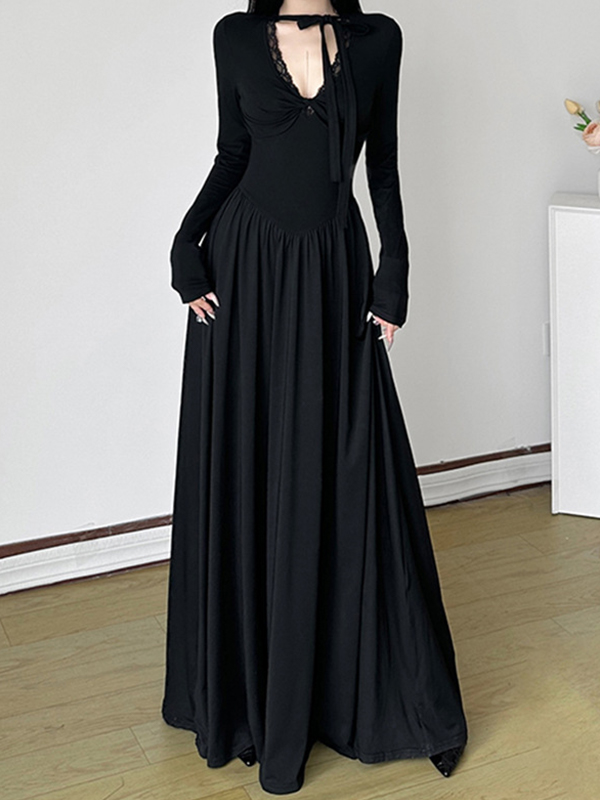 Schwarzes Maxikleid mit Korsett zum Schnüren