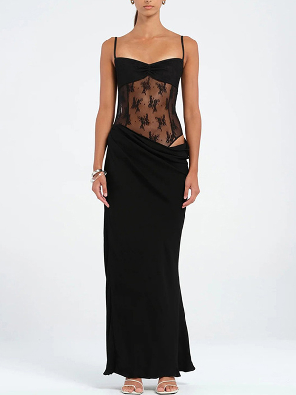 Einfarbiges Maxikleid mit Camisole-Spitze