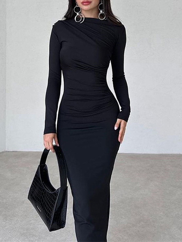 Einfarbiges, langärmliges Meerjungfrau-Maxikleid mit Rundhalsausschnitt