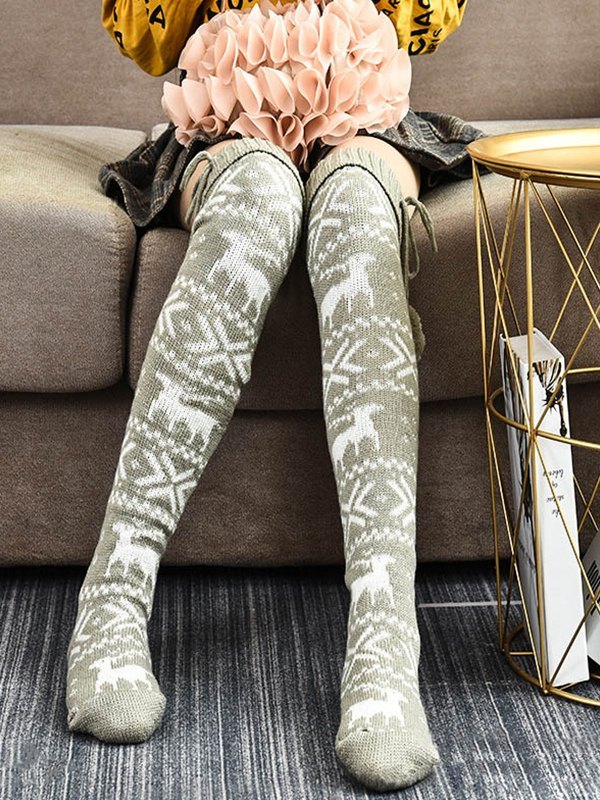 Oberschenkelhohe Socken mit Cartoon-Muster