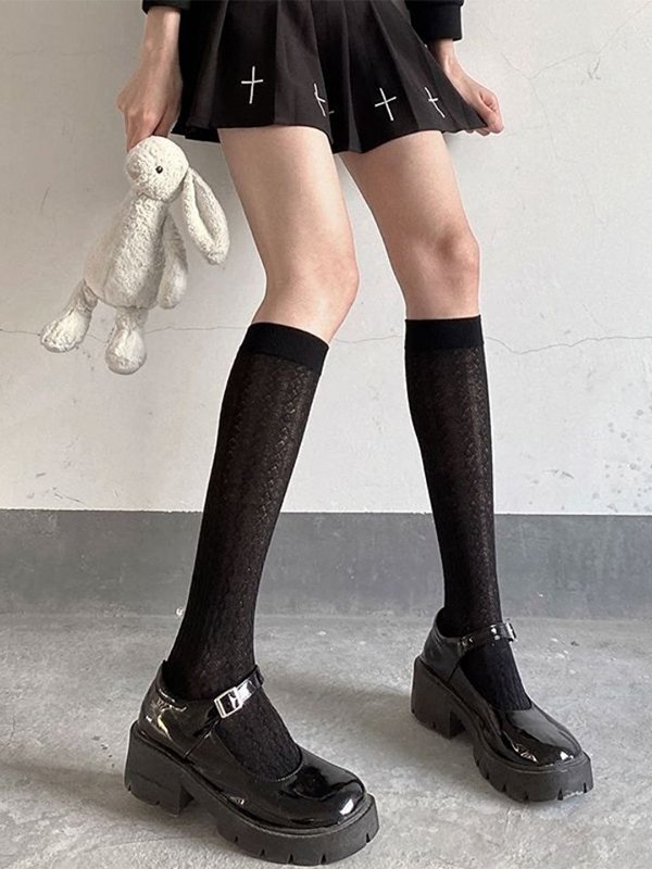 Love Lolita – Süße, gestrickte Socken mit weitem Bein und ausgestelltem Bein