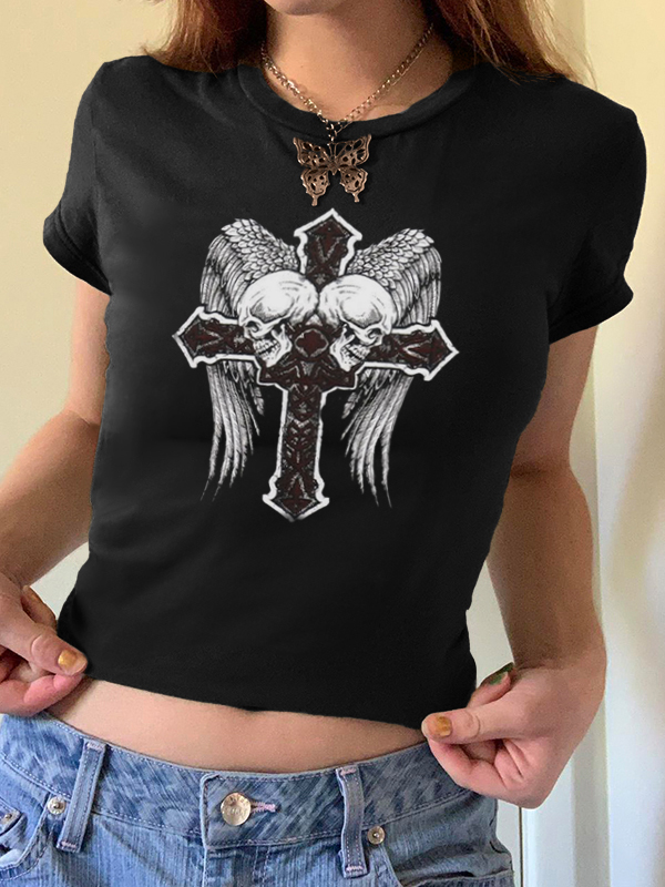 Vintage Wings Cross handbedrucktes T-Shirt