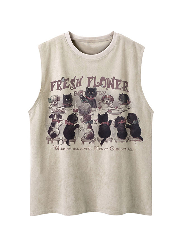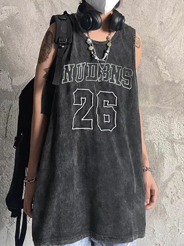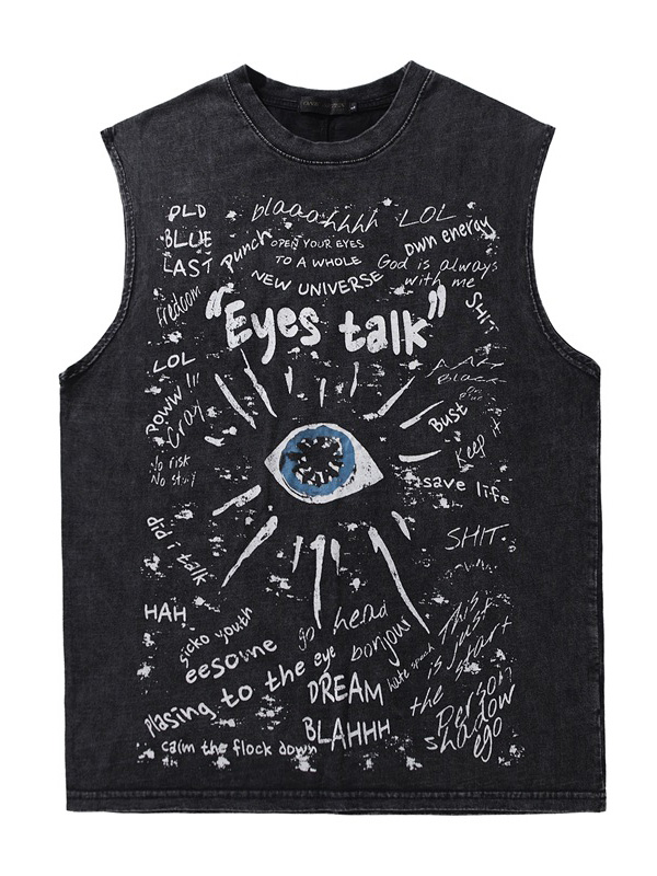 Herren-Weste mit Vintage-Waschung, schwarzer Grafik