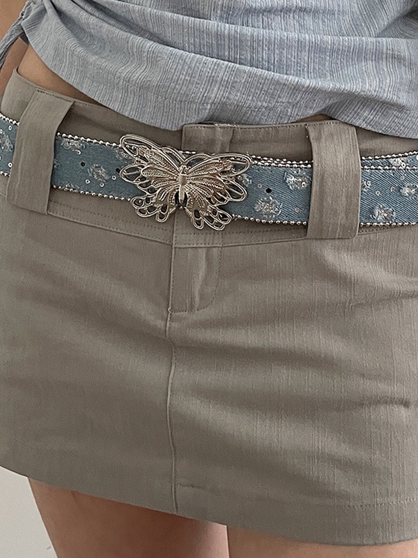 Canvas-Gürtel mit Schmetterlingsschnalle und Paillettenverzierung