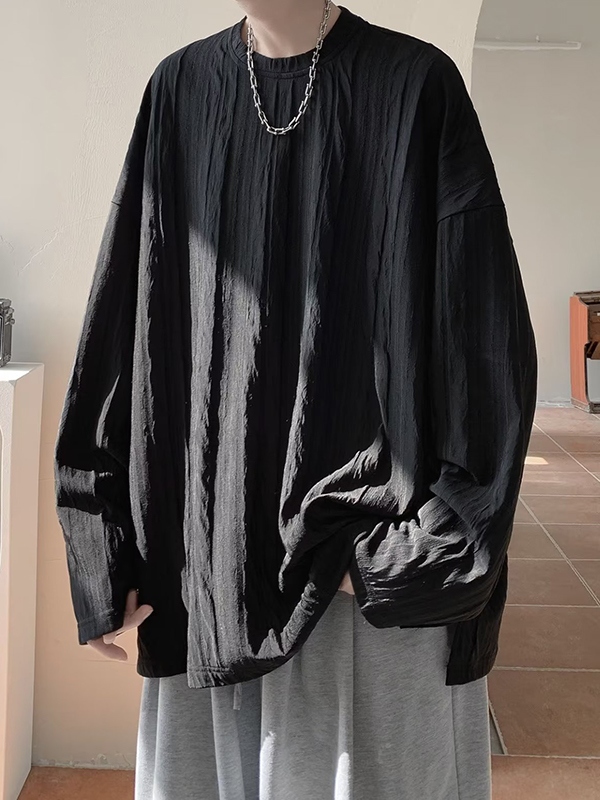 Einfarbiges, übergroßes, langärmliges T-Shirt für Herren