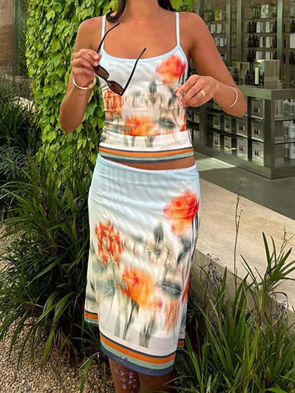 Zweiteiler mit Tintenblumen-Print