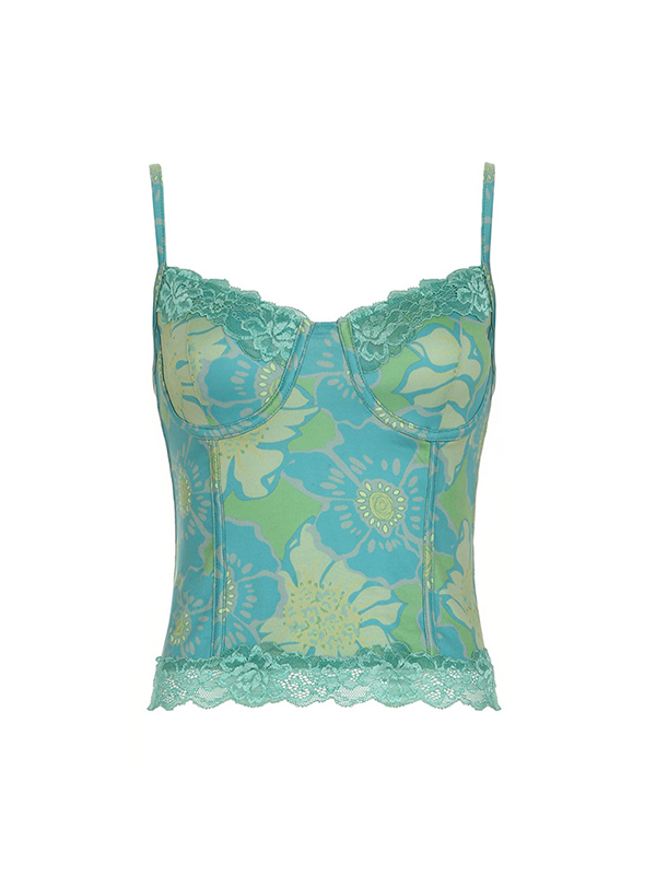 Camisole-Top aus Spitze mit Vintage-Blumendruck